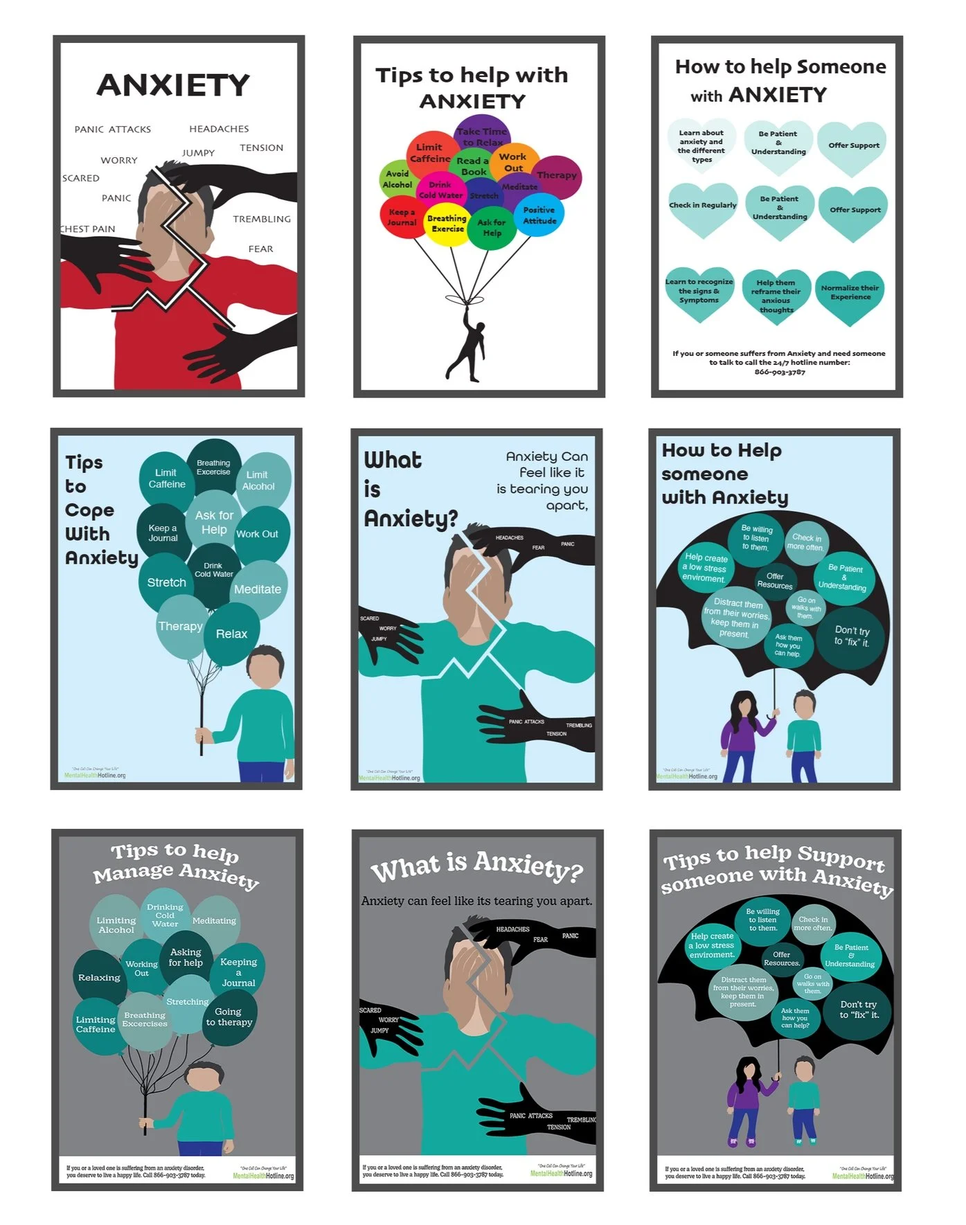 I wanted to coordinate the colors used for anxiety awareness which is teal. I chose to use variations in the posters designs to support and share the message of anxiety awareness.